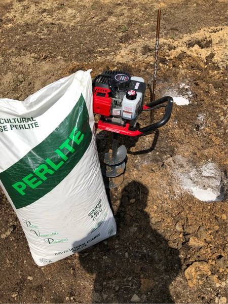 Drilled a couple dozen holes with my auger and filled them with perlite. 8 cubic feet of perlite.
