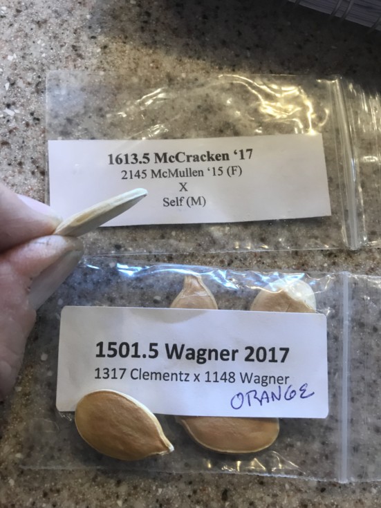 The final Cut – started the 1501 and the 1613 today. Filed edges of blunt 2/3 of the seed until just seeing the interior seed. I’ve had almost 100% germination doing that. Put them in a wet paper towel in a plastic lunch bag and into the incubator on a heating pad. Covered with a black plastic restaurant take-home container (seems to me, seeds expect it to be dark when they do their work - ? who knows). Keeping the 1795 and 1495 in reserve to start in 7-10 days as insurance against catastrophe due to bad judgement starting the others too early. Actually those 2 in reserve are my favorite entries and nervous about starting them so early. That greenhouse better be worth the price!