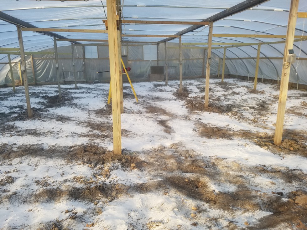 63° outside, 84° inside! It got up to 111° in there today. Spread perlite, should have worn a mask, cough, cough