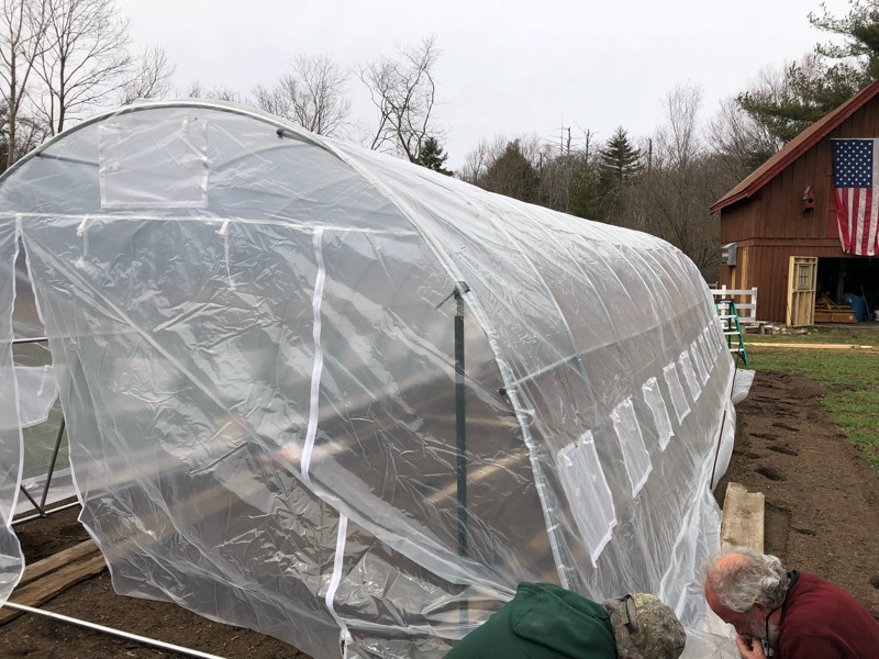 Bought this 13 x 33 greenhouse online for less than $500 delivered. Good quality just needs to really be anchored down very well. It’s not like the greenhouses we made last year but so far it’s doing the job.