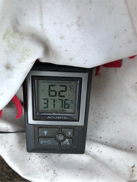 Last night it got down to 31 degrees inside the greenhouses but 62 under the mini hut.