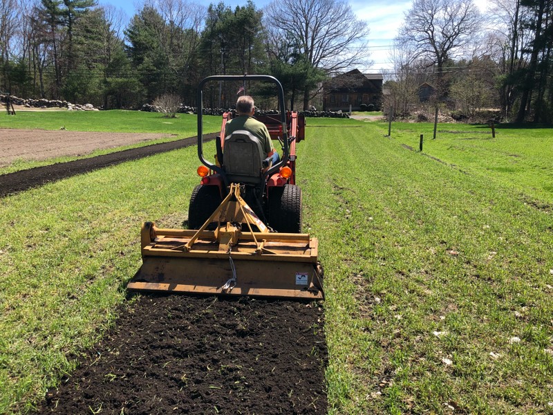 Pap tilling under a mowed cover crop of winter rye in preparation for Kodiak Mighty Mustard! This area will be next years patch.
