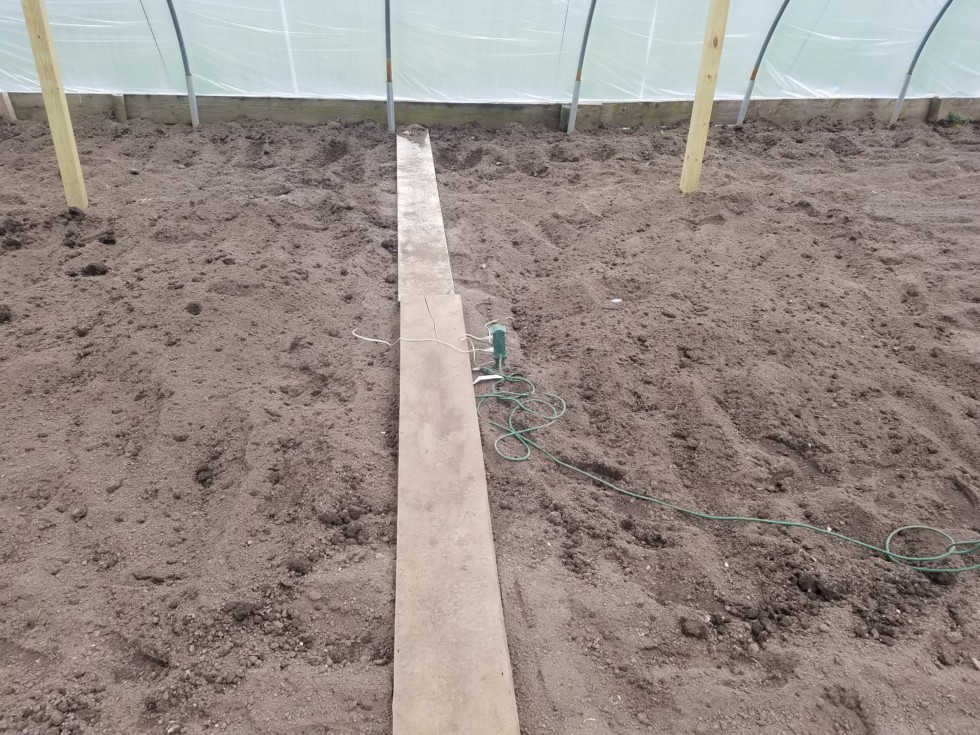 Wasnt happy with soil temp 58°, so I put heat cables in today. Last week really cooled it off. Might put plants out after work in couple days