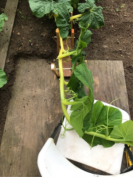The leaves will be trimmed back once they’re done assisting the vine downward. I learned in 2017 that it is incredibly hard to keep a straight vine and get the bend to lay opposite, the natural tendency is to take the path of least resistance which is a twist. This year we are embracing the nature of the plant and allowing the twist to happen over a longer distance to relieve stress. Sounds crazy, but I embrace crazy too.