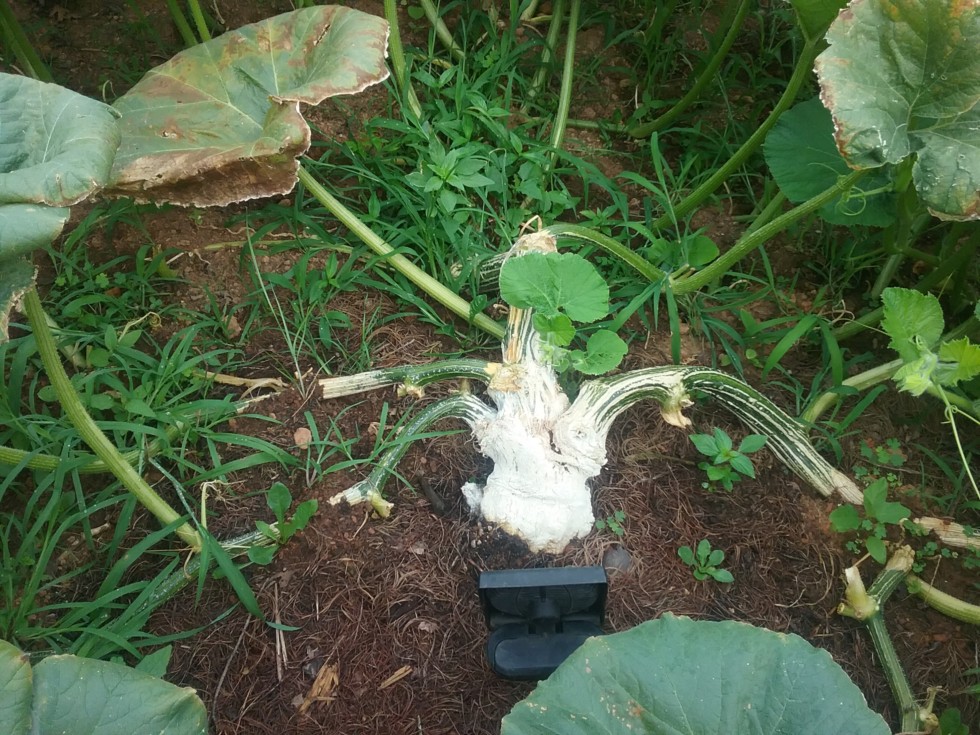The 1937's stump started foaming about three weeks ago. I cleaned it, treated with Captan and kept a fan on it. It seemed to dry nicely, so I didn't cut it loose. Whatever caused the stump to foam tracked out the vine causing it to shut down. Two years ago the same thing happened with the 1756 H/J we were growing. Danny Hester and Rick Jolivette encouraged me to cut the stump and two side vines on each side loose. It saved our season. It grew our largest pumpkin ever, even though we lost about one fourth of the plant. I say all this to share that my advice is to cut your stump loose if it is foaming before it tracks out the vine.