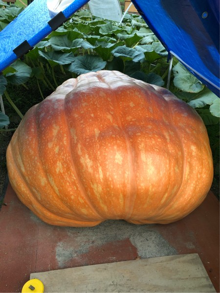 Day 60 on my 742 House pumpkin. Taping 1066 lbs with cc of 170.25”. Gaining steady 18 lbs per day so looking at a new PB if I can keep her alive until the weigh off. Growing on a very small plant.