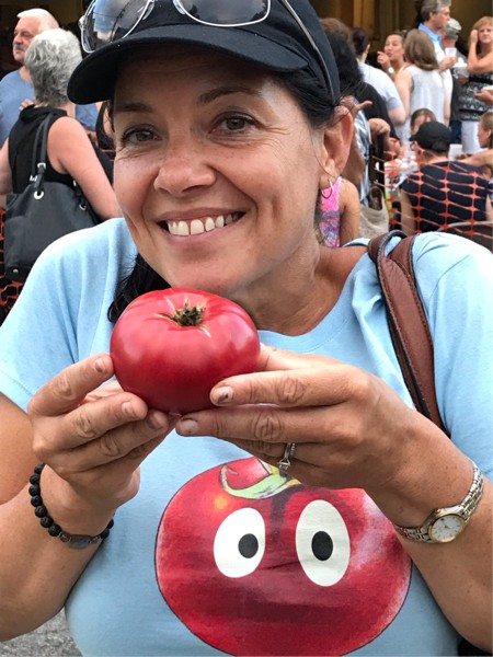 Well, long story short we got there with a minute to spare. I lost my crown by less than a quarter pound and do to local politics Val didn’t win the best looking tomato. Ehhh what do they know anyway. I had her as the clear winner and hands down the best shirt of the event.
