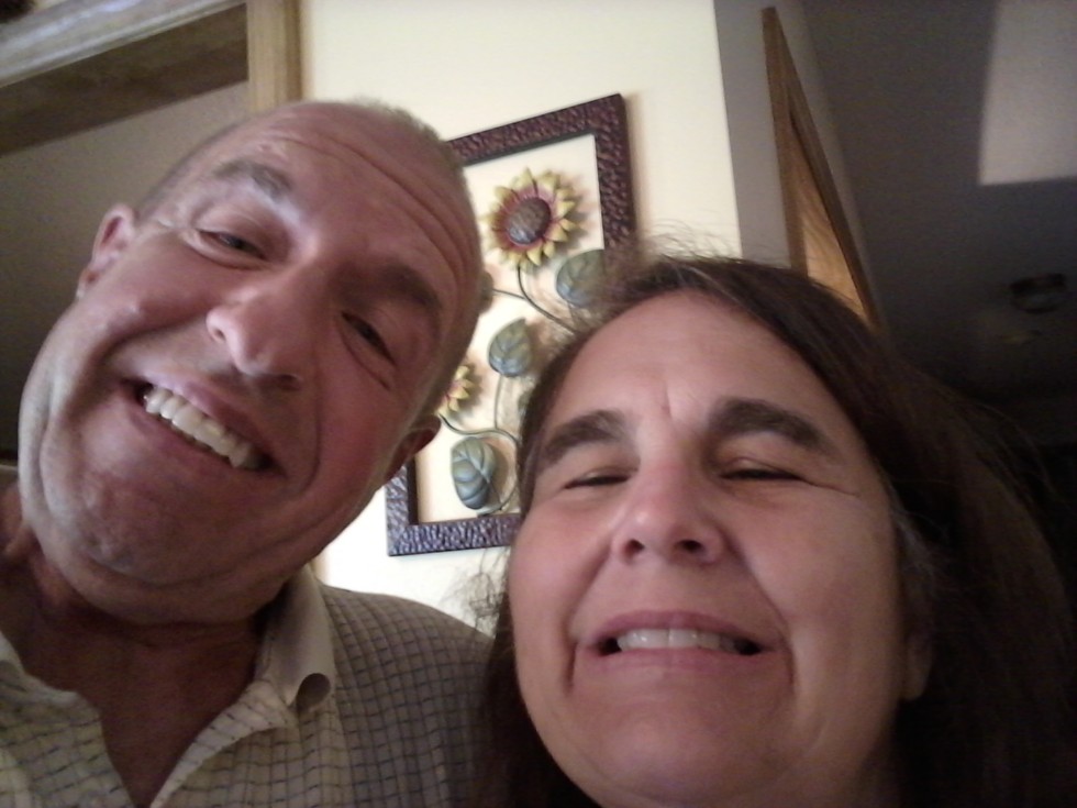 Our marriage counselor advised it might be best to get that pumpkin weighed as soon as possible. See, don't we look happy together now?
