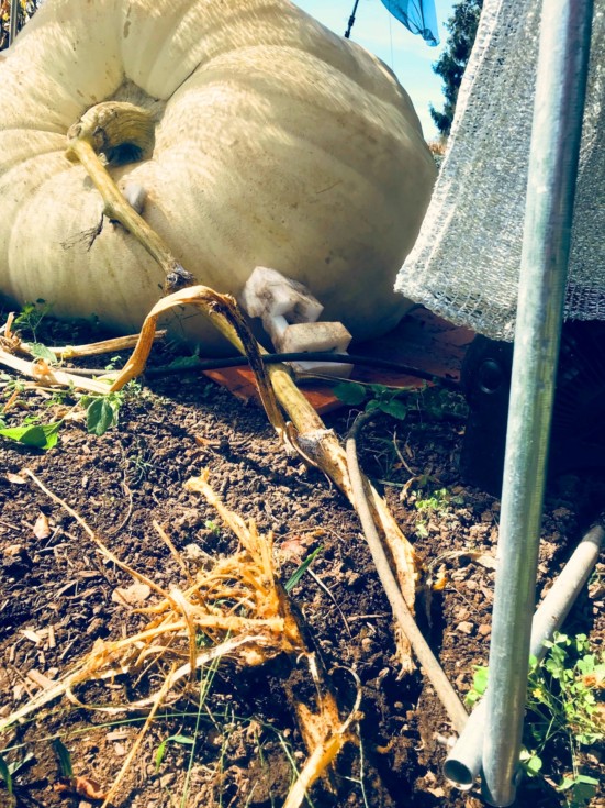 Investigated why this guy wasn’t gaining wt for over a week stuck at around 970– dug up buried feeder, and to no surprise had rotted through – again in vicinity of a soaker. The vine distal to stem was dried out and dead, so cut it off. 2 full weeks to weigh-off. Gonna be close. This season isn’t ending well.