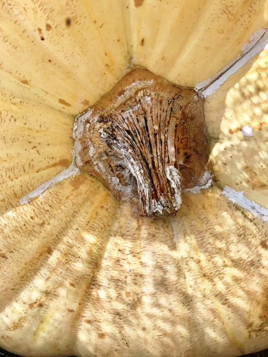Bad news. Despite applying a paste of Sevin, Captan, Dacronil, the stem has rotted completely. Also soft around the perimeter 6-8:00. Curtains. Weigh-off still 6 days away. Big decision here. Stick with the plan and have the rented front loader put it in the trailer, drive 3 hours to Altoona ( ? leave at 0500 to make the 8-9:00 registration time or the night before to increase costs with a hotel bill) and hope the judges don’t notice or care about a little rot. Or, face the music and display some sense (not known for the latter). Our end game was to display this monster by the front door of my wife’s swim school after the weigh-off and have to kids gasp at its size. Normally however, they climb onto it after gasping. That might result in some kid suddenly disappearing into the cavity – not good PR for the business. Only a matter of time (perhaps minutes after arrival) that the staff will have to shovel off (est) 970 lbs of mush and cart it away somewhere. Not good PR for me. What a shame – by far my biggest ever and lost it the final week. Again, I believe the root cause of this repetitive calamity was too much watering. As I said at the send of last year’s failed season from too much water – that’s NOT going to happen again next year. Probably wont have to decide between the above – it’s gonna collapse right out there in the patch first.