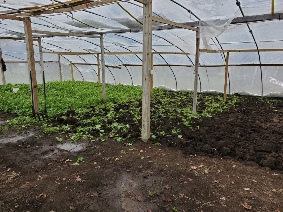 Broadforking coming along nicely, chopping mustard, and broadforking in. To muddy from melting snow to till