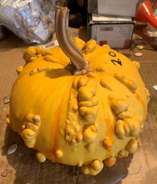 seeds from the 2.0 Yellow with gold strips warted flat gourd