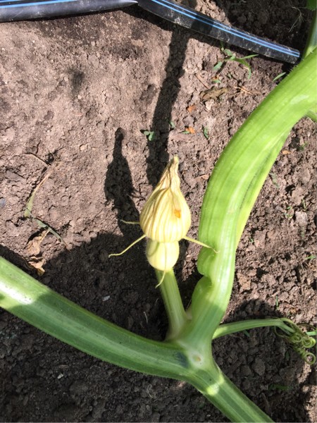 The main vine 5’ further has another female blossom which I will pollinate but I suspect the keeper will be the 9’ fruit because it has such a headstart.