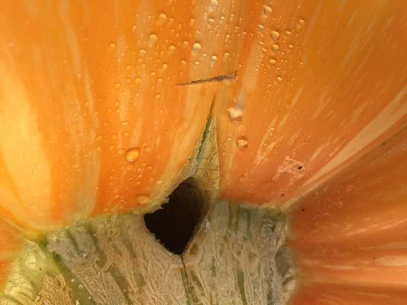 Here you can see I took a knife & cut, extending the split in the stem & in the punkin. Also a short transverse cut in the punkin just beyond the split cut.