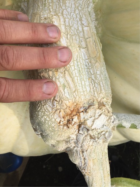 I found a soft brown spot on the stem of my pumpkin on the 2157 Paton plant.