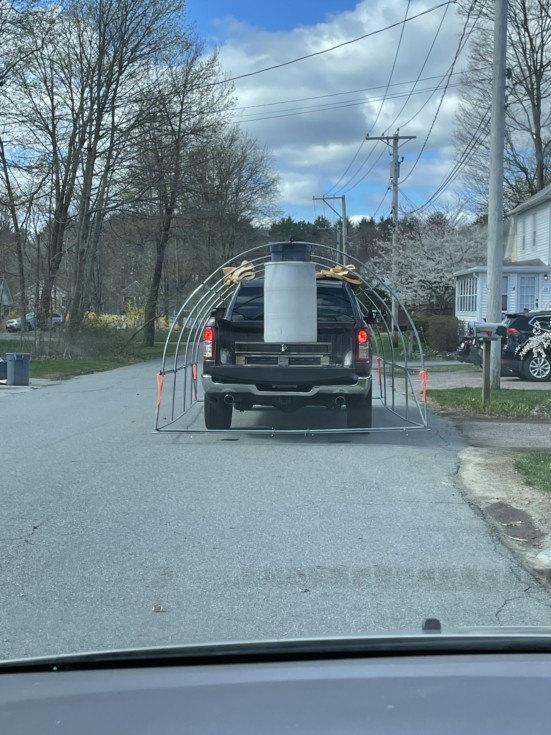 Well that’s one way to transport a greenhouse over to my patch! Thanks Woody! Can’t believe we did it