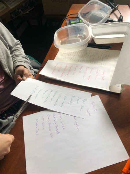 Snipping up the names, folding and dividing up the categories…