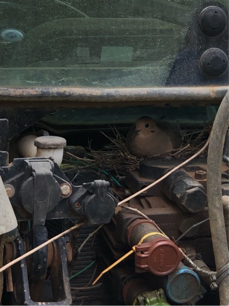 Lol… I’ve never seen a morning dove nest before…too funny. This week he took the baby for a ride…he went easy on the bumps and the momma is back on the nest.