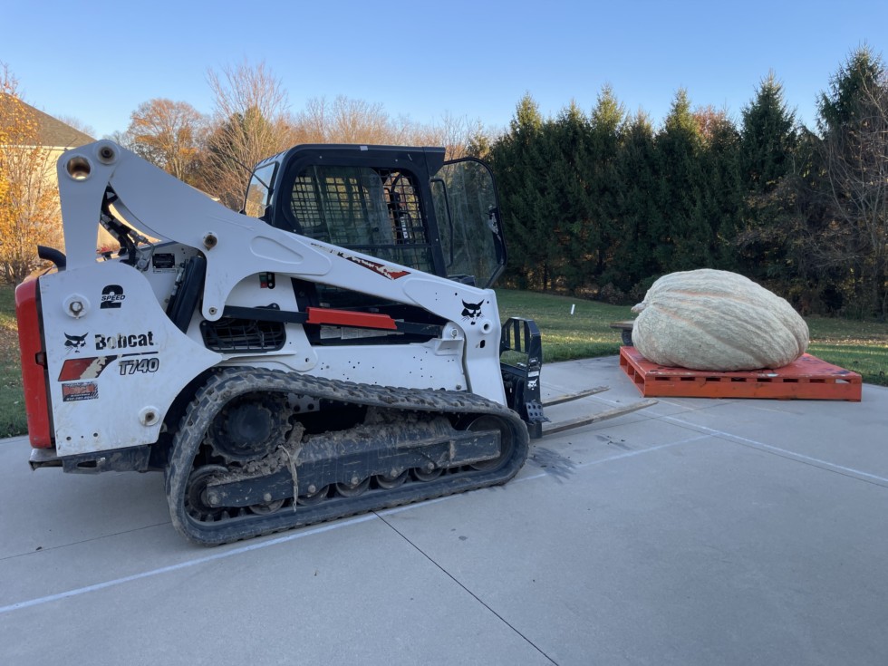 | I elected to have a friend with a landscaping business unload Sparky from the trailer. He brought his big Bobcat, told me that he could lift a 3,000 pounder. As if! |  |  |