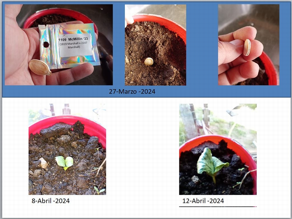 It has been months of preparation of the ground, at the same time I have sown the seed that I could obtain "1109 McMillin'23", I chose this seed, because the national record is around that weight and it is a good start. I leave some photos of its development to date.