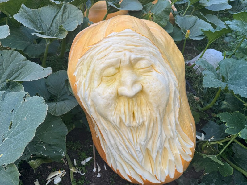 One of the 3 pumpkins on the same plant went soft. Got a quick practice round in before the carving season kicks into high gear