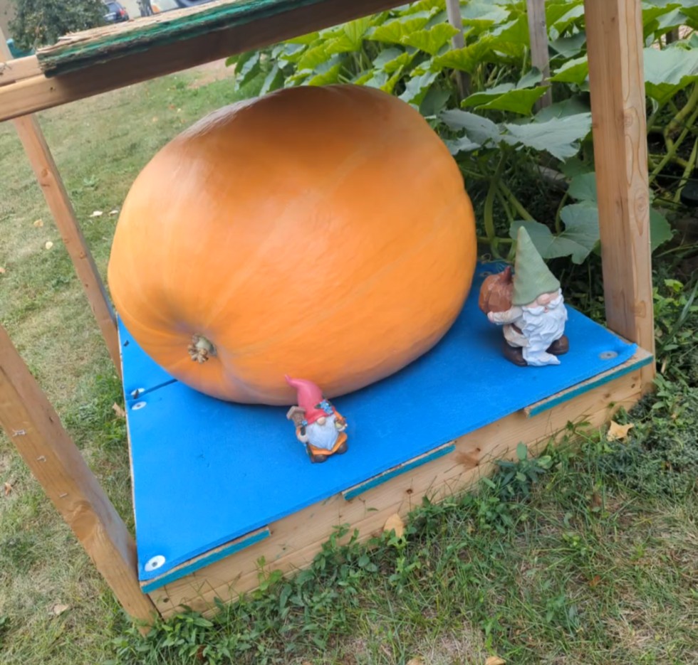 Ok you pumpkin people. Looks like my wife will easily break her PB if things continue. We are currently in first place in the secret 65sq foot challenge. It's amazing what happens when you pay a bit of attention to the pumpkin and don't just let it grow across the grass. :)) It was a fantastic decision to grow it in last year's tomato patch I built on the other side of the house. The tomatoes didn't get enough sun here but the pumpkin loves it. In the heat of the afternoon it hasn't wilted once, No need for shade cloth.