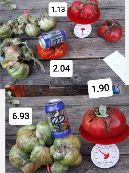 Is that enough tomato growing? Well the 2.04 is a cross between the 1st and 3rd largest tomatoes so far this season... Its the 9.5 Clayton (grew 10.06) x 5.16 Greene (grew 7.04). So, 2.04 Clayton uow.