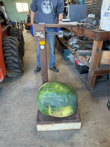 This ugly watermelon that I culled so I could make my way into the patch to harvest the big one weighed 33 kg.