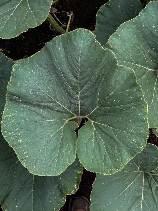 6 days until weigh off. My goal for the plant this year was to keep bacterial disease under control. This picture shows successfully treated downey mildew, much better than previous years. I have mainly used Daconil in the past, which was not very effective. This year I used a mixture of Kocide + Manzate Pro Stick, alternated with Regaila. Also every time I sprayed I added Cease, a biofungacide to colonize the plant and prevent other pathogens from being able to find a home. I also added Natural Wet, a Yucca plant extract/wetting agent. This combination worked significantly better this year. The plant itself also seemed much more resistant to disease which is a likely a significant factor as well. This spray program was found to be effective in a 2019 study done in Illinois, summarized here: