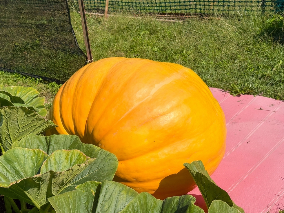 I have let a couple pumpkins grow on the side vines at the end of the season, this one measures about 400 lbs around