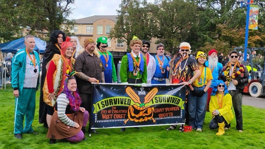 The highlight of the day for me was seeing Gary Christianson (center) at his best. The pumpkin elf turning pumpkin boat paddling into a real sport.