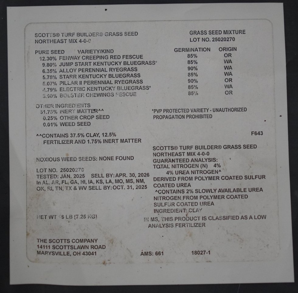 My selected Cover Crop is the Northeast Mix of Turf grass seed by Scotts.  This has worked out well in the past and other than the initial expense and need for daily watering to get it going, it does produce a nice ground cover.  This not only established a different species of roots (grass being a monocot, compared to the dicot pumpkin roots) it is also easy to manage with simple mowing if it growers aggressively, and it tills fairly easily as well.