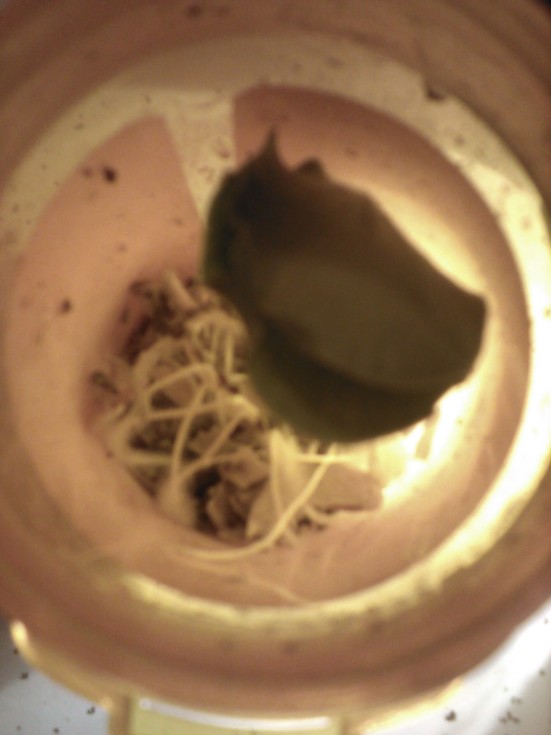 Graphic growth in effect, lol; This is about a 1/2 TBSP. Bio Grow Endo Plus with a 166 Gerry seed that was placed into it to fend for itself with 1/2 TBSP. of H20 as well, the idea being to see how well a seed will grow with nothing butt Mycor! I DID pick off the seed coat and chop it up a bit and toss it in there for the Mycor to feed upon. Further ideas are that the terrarium effect will recycle the H2O enough to live and let live; In any event, I'm happy with the growth rate and the roots a-rootin'! The Mycor is I believe adept at producing glomalin, which sticks soil particles together with many wondrous benefits. It was clear that it had coated the Mycor (Bio Grow) soil granules to exhibit a 'glossy' texture. So, I knew it was working. eg