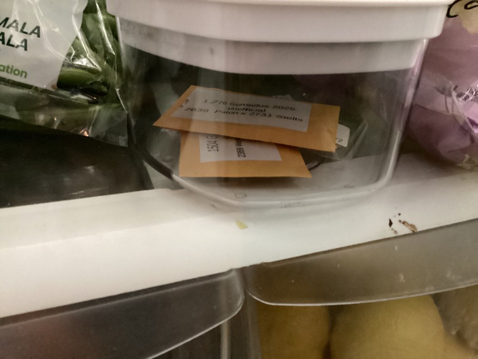 Well, finally my seeds arrived! I ordered the 2097 Kisamore 2024 DMG and 1776 Gunsolus 2025 DMG they arrived so I have 2 2097s and 3 1776s and guess what I got a gift pack of 1504 Gunsolus (2369 Werner x 2670 Thompson) more great ones. Thanks a lot Tyler for those seeds. Now I've got 8 seeds so enough for 3 or four plants or for future years (next year). I should have thüaken a pic before putting them in the vacuum container with the silica gels though.