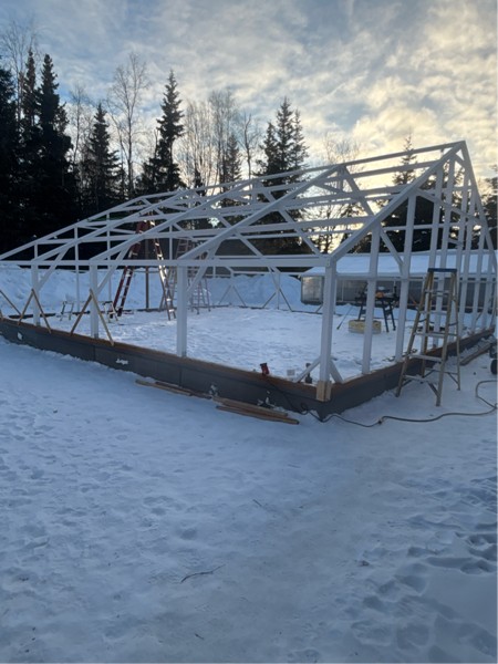 Well , the framing is almost complete , just a few more braces to install (wind shear) Just happy to be off the ladders for now , always slow going The roof will be 1/2 poly carbonate panels and 1/2 6 mil IRAC poly film , which works well for this environment The temps are going to warm up to high mid 20's (yeah) with snow for a couple of days , then drop right back down again for sub zero night time lows, good news gaining over 5 minutes of daylight now per day