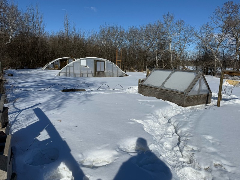 Ran a cord to the melon shack. It's sitting on icy snow. It's hard enough to walk on but I did fall through to about my knee. At -16 nothing much is happening.