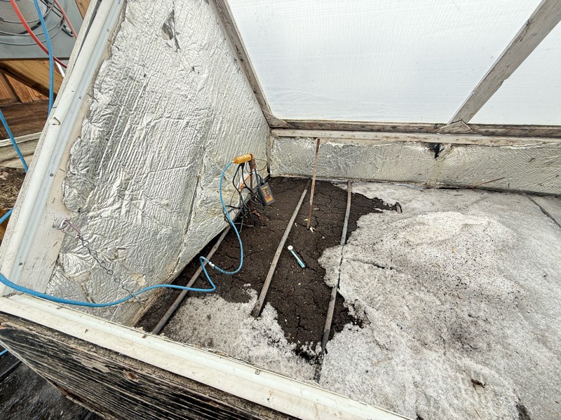 Shop patch shack. Soil warmed enough I can put the thermostat and probe in. Winning.