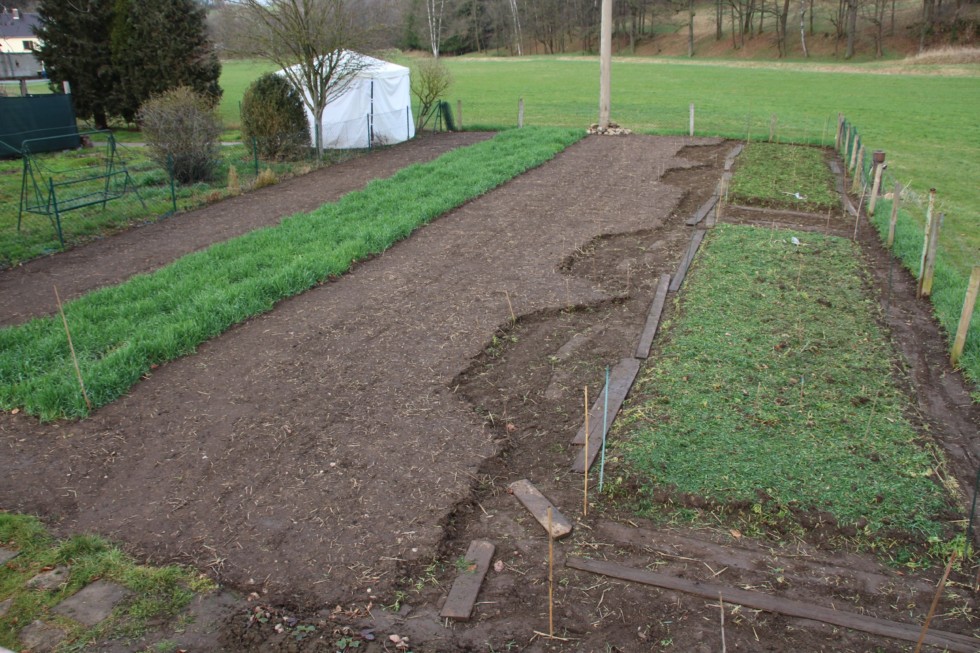 Next step accomplished :) (On top of the mounds, I have added some of the rye clippings as well as some alfalfa pellets.) Last step, the addition of a thin soil cover and clear plastic sheets, will be done during the next two weeks, I guess.