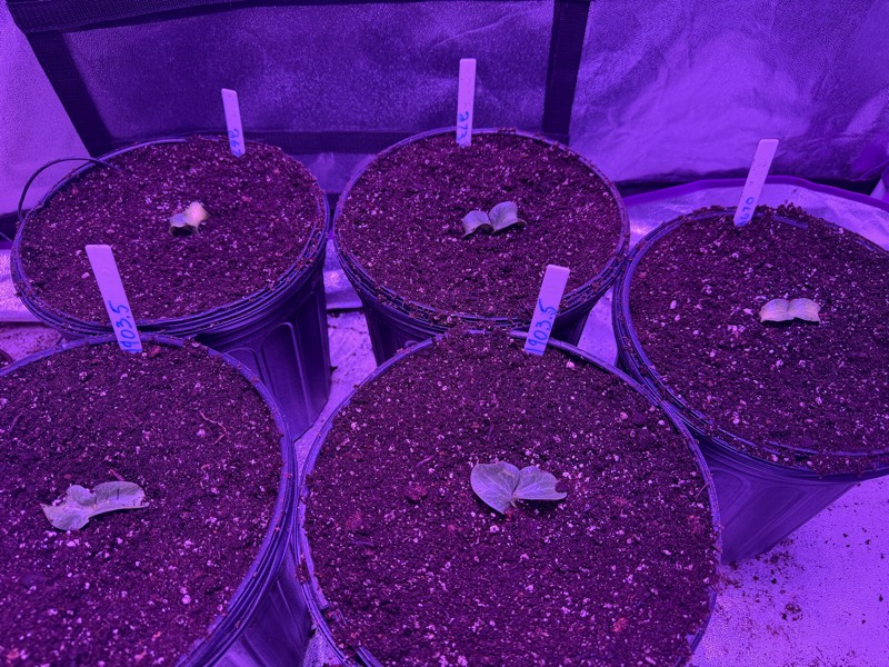 The season has begun! My plants are up and growing for my 11th season. I've got a decision to make out in the patch! Growing two plants. 1 of them will be the 2731 stelts. I'm highly considering Ken's 1903.5 from last year! I really like the 2198 Sperry cross but the 2670 Thompson is solid as well. One of them on the far right came up a bit on the weaker side but I've got another on the far side left which is the one that is a bit curled up. Ken's in the front. Time will tell!