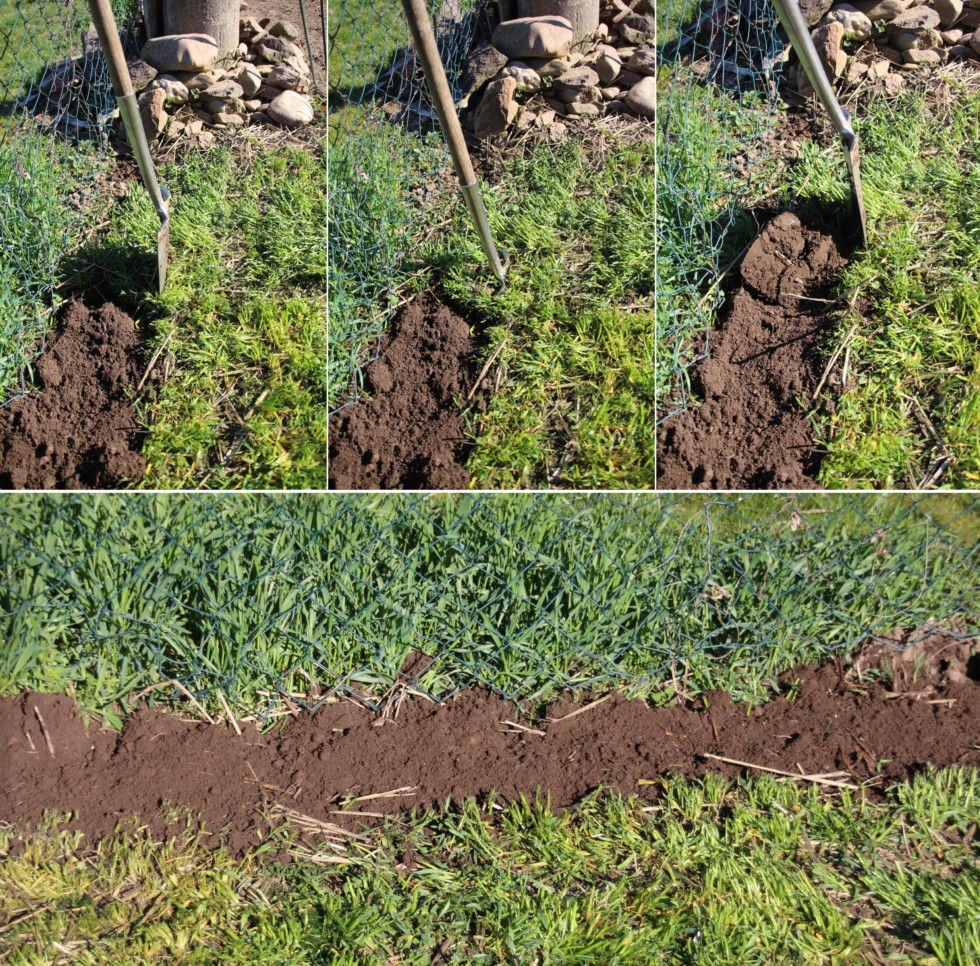 Step 2: Somewhere I need to start, and where I start with the procedure I turn the soil in the 'normal manner' turning blocks of soil (a spade deep), but I do it that way along one single row only.