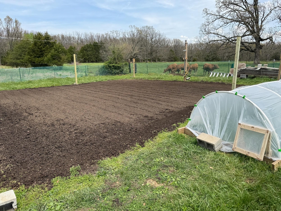 All amendments tilled in, next I'll work on getting the irrigation set up and about a million other details. The cattle next door were very intrigued...