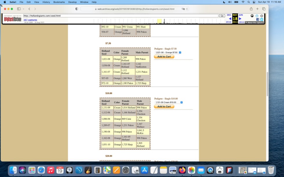 As I tried to find information about the 1190 Holland that grew my 580 in 2011. I received much incorrect information from ai. I have decided if ai does not know, it will make up the details. Is it it that hard to get ai to say "i do not know". Finally, i tracked down the archive of the exact page that I ordered the seed from in 2011. I really am wanting to see if i can get this 15 year old seed to sprout now. It might be my last one.