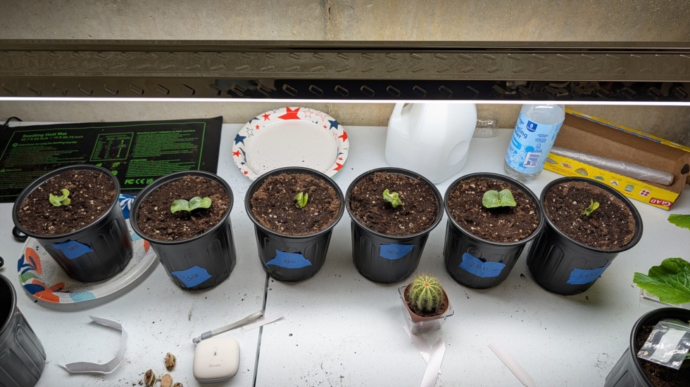All six I started are up and growing. I'm planning to get them in the patch this weekend. With my test plants I was surprised how fast they become root bound in a 1 gallon pot.
