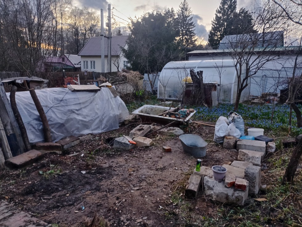 The 2026 season has begun! Since autumn, I've been dreaming of planting a giant pumpkin again, but... things are a bit complicated by the fact that I don't have my own plot. Plots near Moscow are very expensive. And I could buy a plot somewhere far away, but I wouldn't be able to travel there often. So I turned to my relatives and friends, and I managed to secure two spots for pumpkins. On one of the plots, it's just a clearing. But on the second, the 16 square meters they gave me were littered with the remains of the old house: pieces of the foundation, old boards, and other debris. I spent the whole day clearing it all away. The foundation stones are very heavy, and I was only able to drag them a little and arrange them around the perimeter.