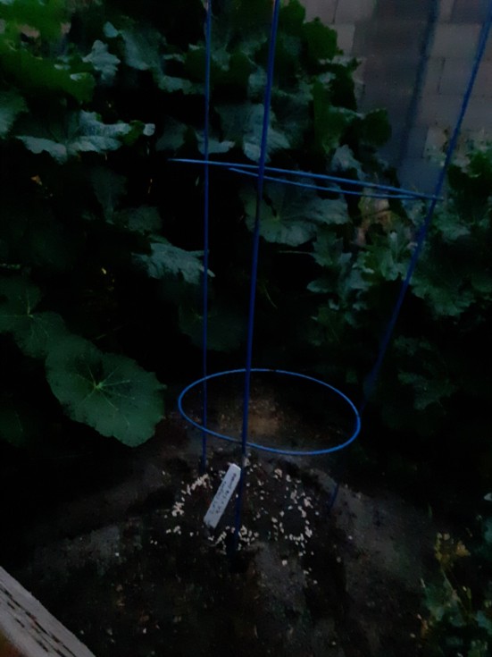 2.04 Clayton tomatoes x 2. Just emerging. Spread anti slug pellets. If it grows as vigorously as the hollyhock behins it, then maybe I've got a chance at a new pb. I might put the 8.64 Sherwood nearby. The 2.04 Clayton is a genetic cross of the 9.5 Clayton plant that grew the 10.06 Clayton and the 5.16 Greene plant that grew the 7.04 lber (in addition to two other tomatoes). I think the odds are finally tilting in my favor which is exciting.