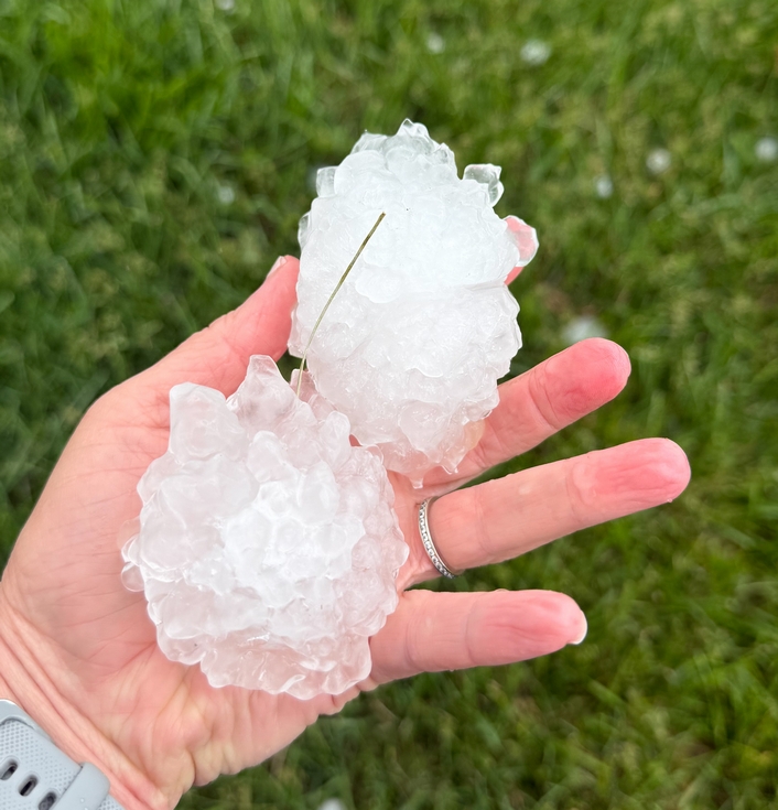 Major hail storm yesterday. This pic was from down the road, at our house it was more golf ball sized. Lots of damage with baseball/softball sized hail. This stuff went right through local greenhouses not to mention peoples skylights and windows. Fortunately it was not this big at our house and I had hail netting over the mini-greenhouses so at least the plants are safe.