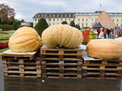 German Top 3 2002 at the Ludwigsburg Weigh-Off (in the Background you see the Guiness-Book-of-Records Pumpkin Pyramid (about 50' tall)