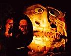this was done at fright fest at six flags great america .Artist steve dahlke create this carving during the day on friday and lite it up throughout the weekend