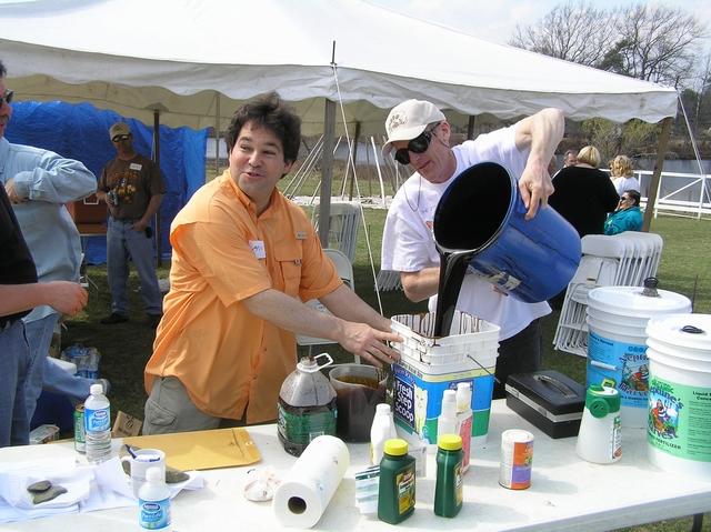 THE MOLASSES was FLOWING! Mike Oliver and Steve Connolly poured a ton of molasses. 30(1 gallon)orders were filled at the SNGPG Meet + Greet on April 15, 2006 at Frerich's Farm. The SNGPG growers like their giant pumpkins sweet.