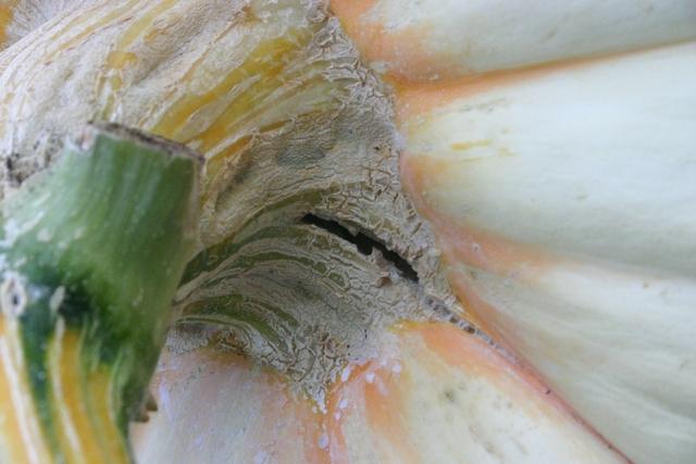 Here is the lower split....as i said,,, there is a cavoity of air behind the stem for about three inches inside before it hits solid flesh...Normal? Salvagable?